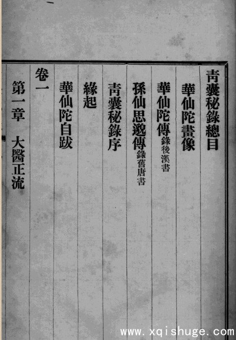《青囊秘録》,传为华仙陀著,孙仙思邈序,民国时期道家秘传易医书籍;全书不仅融合医理医道、天道、人道等古代自然科学深刻地揭示了人类生老病死的玄妙原理,同时也为人类追求健康长寿、祛病延年等希求提供了救世良方。